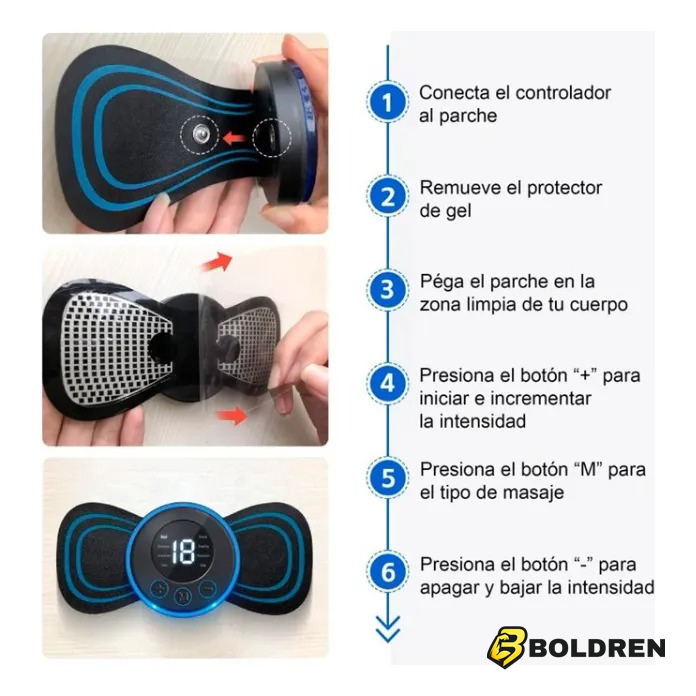 Masaje profundo y efectivoEmite impulsos eléctricos de baja frecuencia que estimulan los músculos para lograr un masaje intenso, relajante y terapéutico.